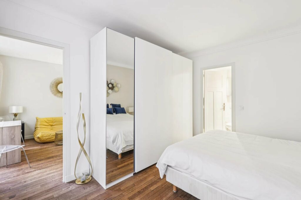 Cet appartement propose un cadre de vie préservé et lumineux, rare à Paris : les larges doubles fenêtres exposées Sud-Ouest offrent une luminosité généreuse tout en garantissant une intimité totale. Face à un mur pignon, l’appartement bénéficie d’un calme absolu sans aucun vis-à-vis – un luxe recherché au cœur de la capitale qui assure discrétion et sérénité au quotidien.