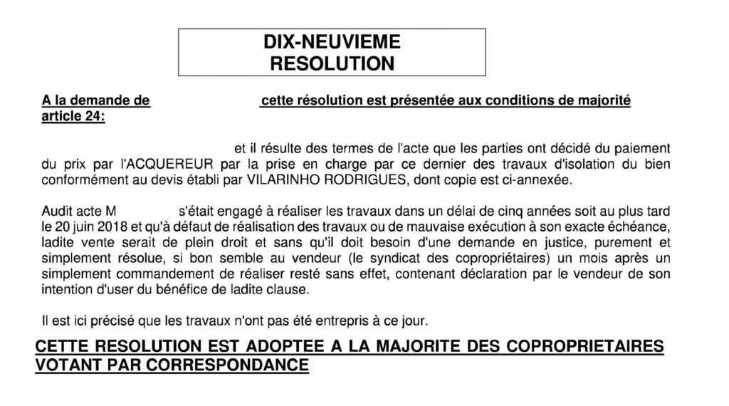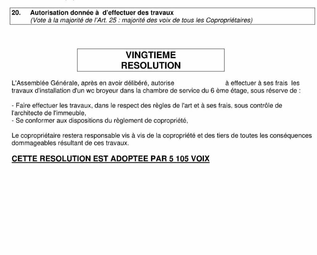 Isolation de la toiture [résolution 20 de l’AG 2020], acceptation de la pose d’un broyeur par la copropriété pour les WC
